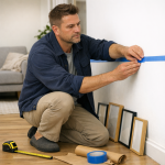 Hvis du hænger op uden at bore (strips, klæbesøm osv.), så er det ekstra vigtigt at teste med papir først, så du ikke ender med at flytte rundt på lim og tålmodighed. Jeg har skrevet en praktisk guide til det i min vægtype-guide til ophængning uden huller.